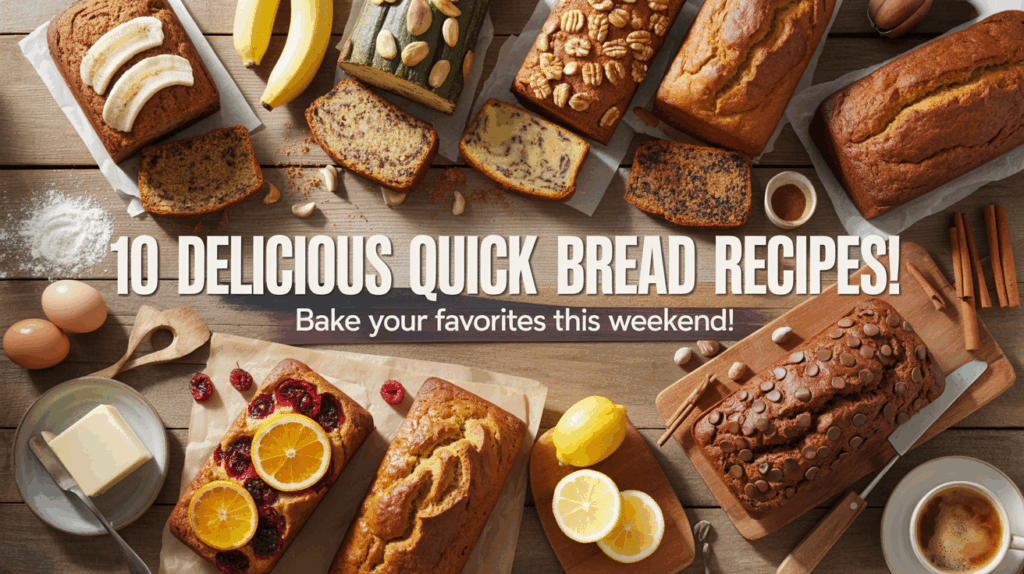 Quick, dependable, and delicious — these 10 best quick bread recipes cover everything from grab-and-go breakfast to cozy dessert loaves. Each recipe is numbered #1–#10 for easy reference and quick navigation.